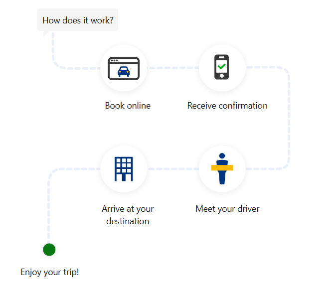 You’ll be met on arrival and taken to your vehicle. Your driver will track your flight, so they’ll wait for you even if it’s delayed